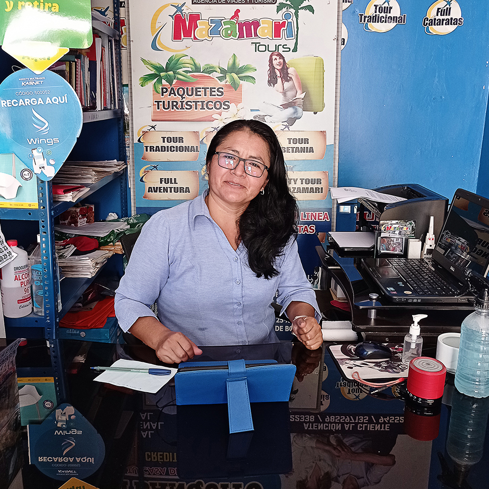 Zila, administradora de profesión, dejó su empleo público para seguir su verdadera pasión: el turismo. Fundó una agencia de viajes en Satipo, que complementó con servicios digitales para ayudar a su comunidad durante la pandemia.